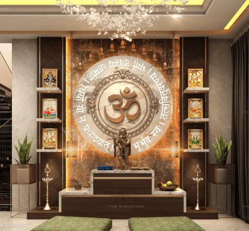 Designing serene and spiritual home temples with elegant interiors for divine ambiance and peaceful devotion.